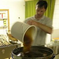 Der Honig wird mehrfach gefiltert um Fremdkörper auszuscheiden. Der fertige Honig wird dann je nach Sorte weiterverarbeitet und in Gläser abgefüllt.