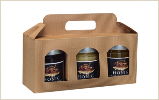 3er Honig-Kartonbox. Ideal als Geschenk für Firmen oder Privat - oder einfach zum Verkosten.Dieses Produkt gibt es nur auf ANFRAGE.